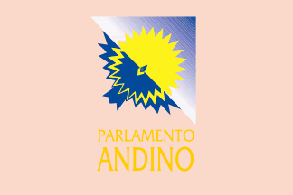 There is an International Organization of Regional influence called Parlamento Andino (Andean Parliament). I saw today its flag display during the 7 o'clock evening news on Colombian RCN channel ( http://noticias.canalrcn.com/ ) The flag is the Emblem with the letters in black and everything on a square, on white background, outlined black, on a plain white background. The proportion of the emblem on the plain white flag is like the CAN flag. The Andean Parliament is an organ inside the Sistema de Integración Andino SAI (Andean Integration System, in English). The SAI is comprised of the following organs and institutions: