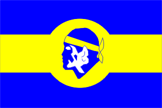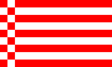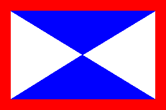 A sort of a non-swallowtailed burgee, red, with dark blue