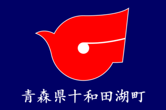 The city emblem was adopted on Mar 14th 2005 by Notice No 45 but there is no flag law. The white flag has a green and a blue two color city emblem in the center. The green color stands for an abundant and fresh nature and the blue color for an abundant and clear water of Lake Towada.