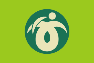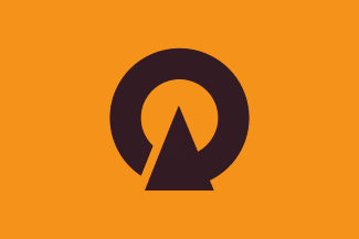 The city emblem is a stylized hiragana お energetic O in heavy crop form in a