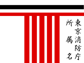A white flag charged with yellow Tokyo Fire Dept emblem on one black and