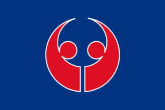 flag law. The blue flag has a red city emblem with white fimbriation in the