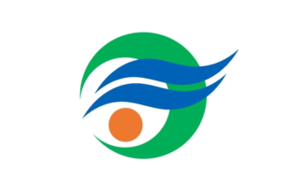 The town emblem was adopted on Aug 5th 2005 but there is no flag law. The white flag has a green, a blue and an orange three color town emblem in the center. The town emblem is a stylizrd hiragana き Ki of Kinko. The green color stands for Sakurajima Island, Satsuma Fuji = Mt. Kaimondake and the ground, the blue color for Kinko Bay and a blue sky and the orange color for the landscape of the town shown up on the sunset. It represents a reconciliation and a solidarity of the town administration and an image of the vigorously bright town which makes a leap forward ,developes and prospers.