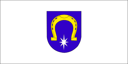 horseshoe and an 8-pointed star. Flag proportions 5:6, fringe is
