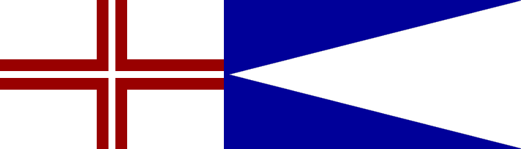 21. Hydrographic Service (1:2) - The national flag with blue compass rose in white canton. No modern reports of the usage of this flag reached us, but if the hydrographic service ever gain some boats (I presume there are none currently) it would be very probably that they would proudly use this flag.