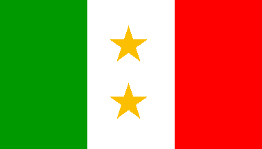 and 1830s. It uses the Mexican tricolor and two stars to represent the