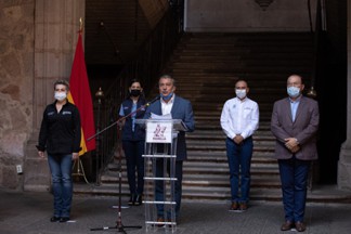 It was until 18 May 2020, in the frame of 479 anniversary of the city’s foundation, when, for the first time, the first monumental flag of the city was hoisted at the Héroes de la Independencia (Independence Heroes) square. The flag follows the description provided by the 2015 edict: bicolor yellow over red and the coat of arms in the middle: 1, 2, 3, and 4.