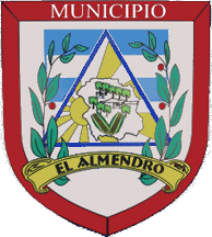 Vertically divided buff-white-blue with the arms in the central white stripe.