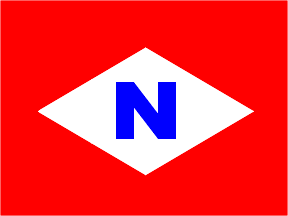 Flag: red field, White diamond bordered black, black "N"