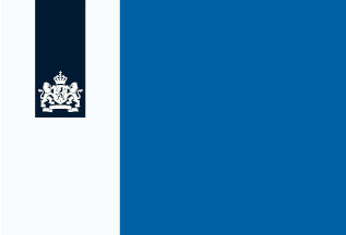 The new flag has a blue field with a white one-third width vertical stripe next to the hoist and containing at the top the emblem of the Royal Netherlands Navy in an orange rectangular stripe. Flag has been used since 2011.