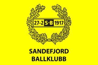 The flags of Sandefjord BK (Sandefjord Ballklubb) from Sandefjord use yellow and black either on a horizontal y-b-y triband or a plain yellow field with the badge centered.