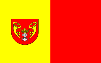 Here is the flag of the commune of Trąbki Wielkie, in the county of Gdansk, Pomorskie Wojwodship, old German name: Groß Trampken.