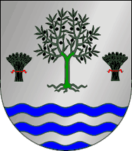 The arms are Argent an olive tree Vert eradicated and fruited of the Same between two sheaves Vert tied Gules and on a base wavy Azure two barrulets wavy Argent. Mural crown Argent with three visible towers (village rank) and white scroll reading in black upper case letters "ASSUNÇÃO - ARRONCHES"