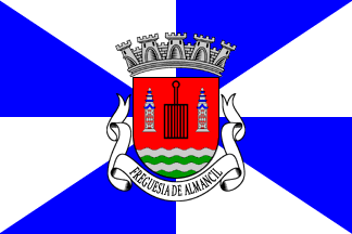 Mural crown Argent with five visible towers (city rank) and white scroll with inscription in black capitals "FREGUESIA DE ALMANCIL".