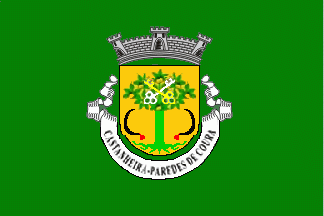 It is a typical Portuguese communal flag, with the coat of arms centred on a plain green field.