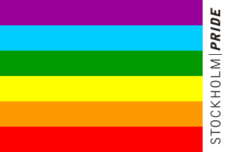 A flag used during Stockholm Pride Festival in Stockholm, Sweden, was like the Rainbow flag with red on top but with a white vertical stripe along the fly with the text "STOCKHOLM PRIDE" in sans serif letters of which the word "PRIDE" was in bold letters.