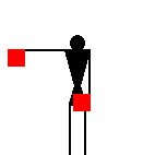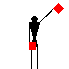 When receiving, the signaller stands at the “ready” position with the two flags crossed in front of the legs.