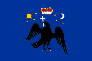 an eagle Sable bearing a cross Argent in its beak, with a princely crown above his head.