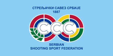 The flag of Serbian Shooting Sport Federation is light blue with logo and name in Serbian and English.