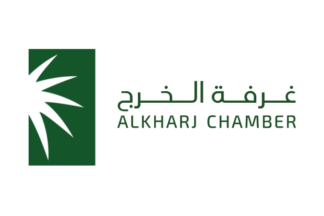 The flag of the Al Kharj Chamber in Riyadh Province is white with the logo and name.