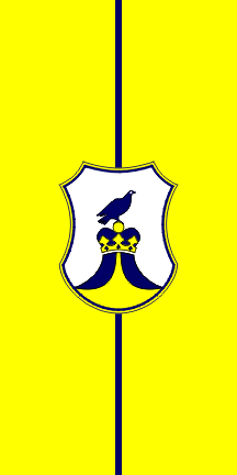 A variant of the flag with the name of the municipality placed beaneath the coat of arms is also used.