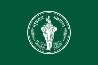 The Bangkok Metropolitan Administration website mentions a city flag, but has neither an image nor a description of it. The image of the badge is shown on the site on a light green square, but it does not appear to be a representation of the Bangkok flag: