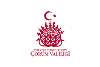 The flag of Çorum Province (photo) is white with the province's emblem in the middle. "Türkiye Cumhuriyeti" means "Republic of Turkey"; "Valiliği" means "Governorate".