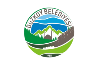 The flag of Düzköy (photo, photo, photo, photo, photo, photo) is white with the municipality's emblem. "Belediyesi" means "Municipality".