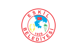 The flag of Eskil (photo, photo) is white with the municipality's emblem in the center. The former flag of Eskil (photo) was white with the municipality's former emblem in the center. "Belediyesi" means "Municipality".