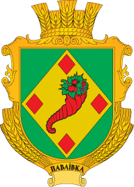 Vertically divided red-green 1:3, with a yellow ornamental trypillya on the