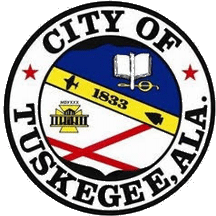 A possible photograph of the flag: https://www.tuskegeealabama.gov shows a simple seal on a white field. This may be a picture that looks like a flag.