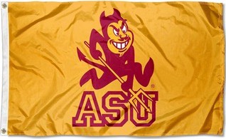 The flag of Arizona State University can be seen at