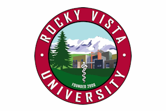 Rocky Vista University is an osteopathic medical school with campuses in Colorado and Utah. It's flag is a color seal on white: