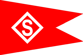 tugs and barges. The flag is a red burgee with a white S inside a white diamond.