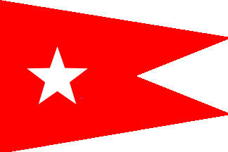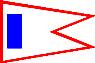 Pennant horizontally divided white-red with blue end.
