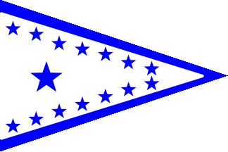 Blue pennant with red-white-red-white-red horizontal stripes at fly.