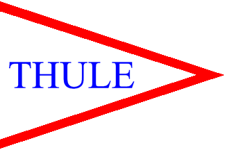 pennant with a red border and the blue letters "THULE".