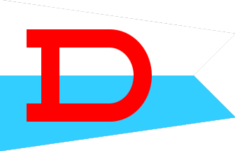 While their storefront does show apparel with a flag similar to what we have (just in more standard colours), the burgee they show in their emblem is different, with a plain inner red D, but around that a shaped outer white D.