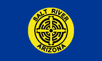 The Salt River Pima and Maricopa have two flags - one de jure, with the true seal of the community and one de facto, with a simplified version. The true community seal can be seen throughout the reservation; the tribal headquarters
