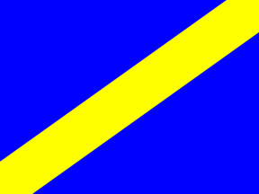 Blue Flag (blue field, thin yellow stripe from lower hoist to upper fly): Displayed to a rider who's about to be passed.