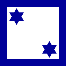 flag with a blue border (width: 1/10 of the flag width) and three blue six-pointed stars (diameter 1/5 of the flag width) placed along