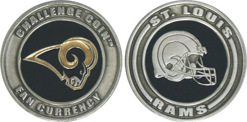 ![]() $5 St. Louis Rams 1 ¾" Pewter Challenge Coin (shown front & back) |