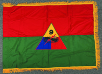 #637 10041325 3x4' Army 9th Armored Division indoor flag $50 appliqued double flag with pole hem and fringe old stock, former display 1 available lr241122 |